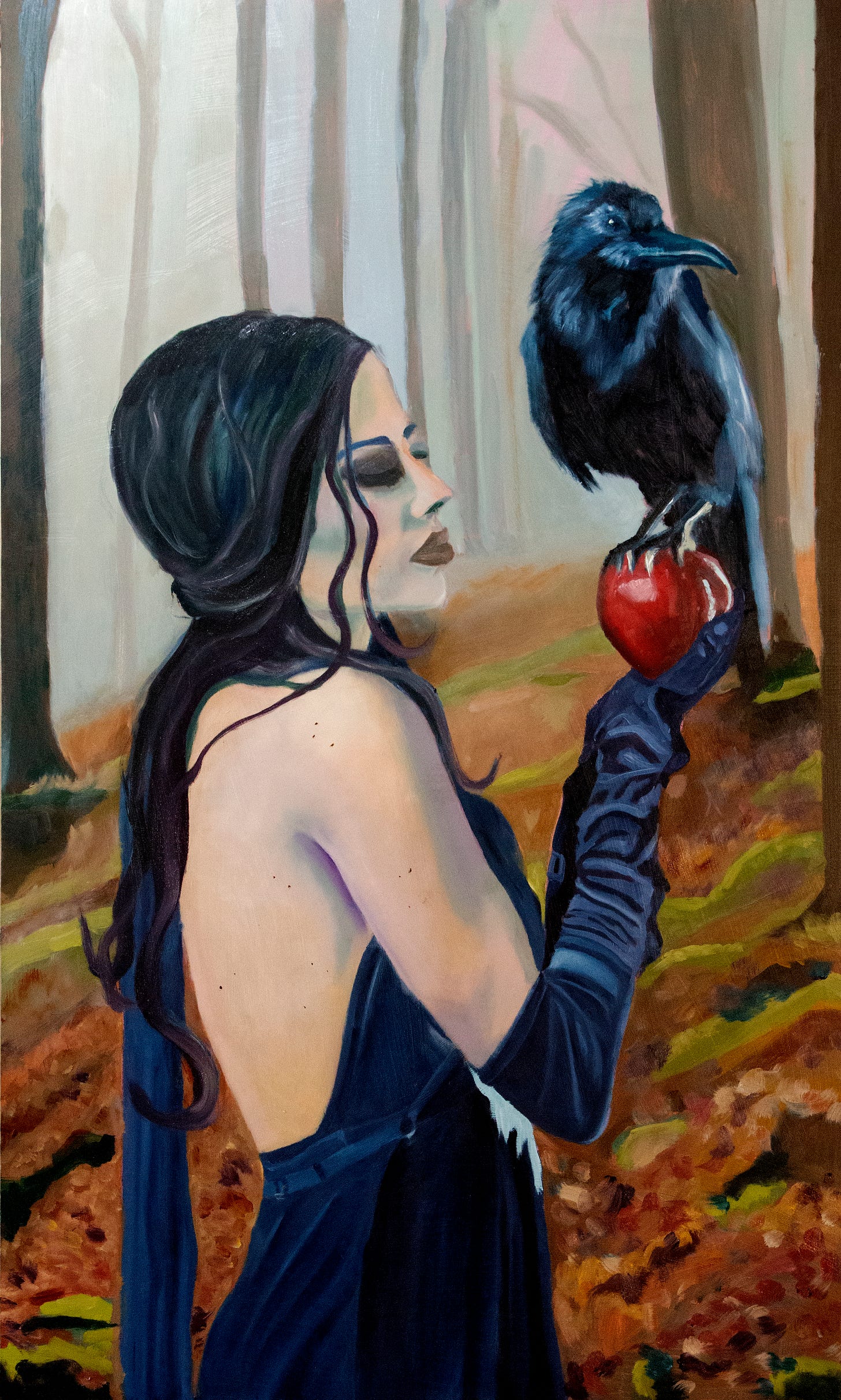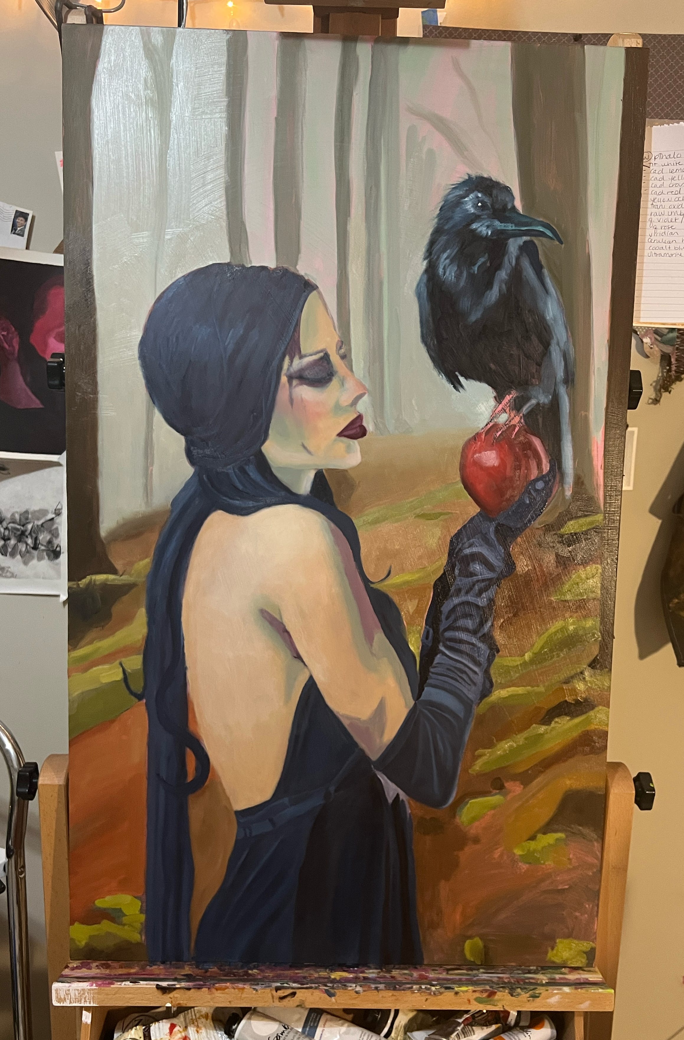 I recently completed an oil painting that was meant to represent my matrilineal line — my grandmother, my mom, and myself, through the portrayal of Morgana le Fay & a raven.
